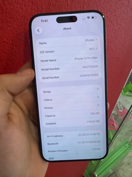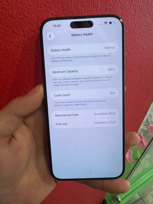 Prodajem rabljeni iPhone 15 Pro Max s kapacitetom od 256 GB u odličnom stanju. Uređaj je proizveden u studenom 2023. godine i ima bateriju sa zdravljem od 84%. Moćan i brz smartphone s najnovijim iOS sustavom i odličnom kamerom koja će zadovoljiti sve vaše potrebe.