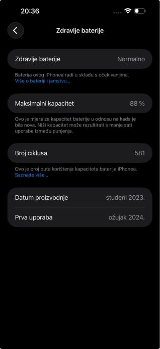 Zdravlje baterije 88%.