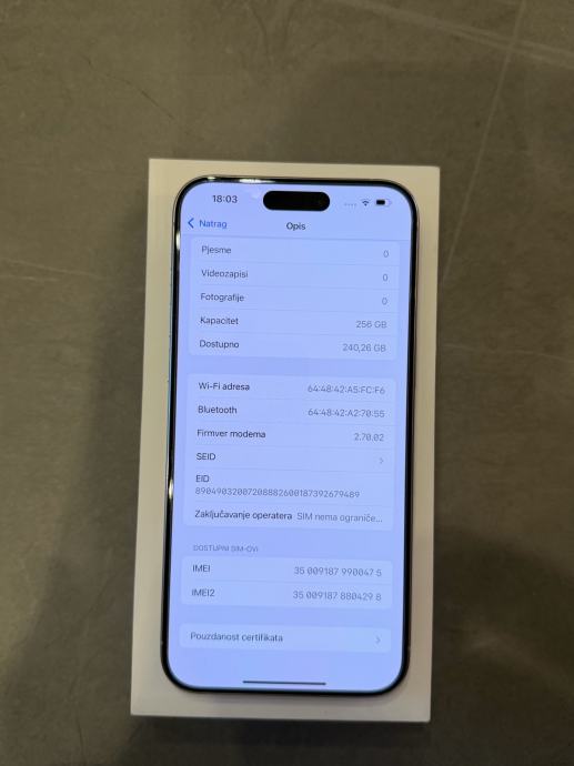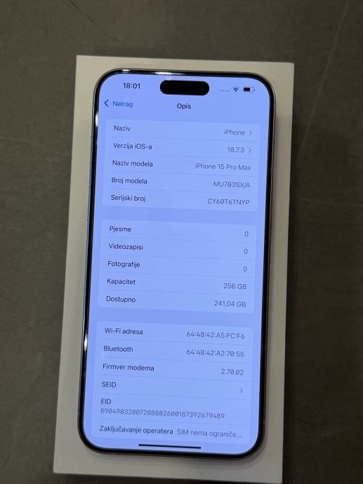 Prodajem iPhone 15 Pro Max 256 GB White Titanium