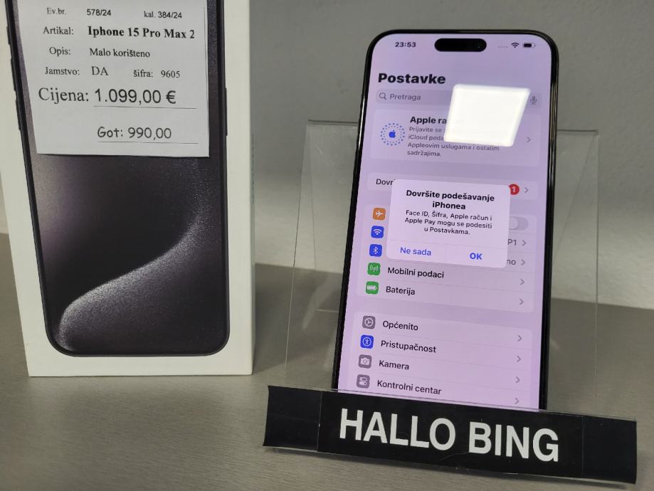 Iphone 15 Pro Max u savrsenom stanju bez tragova koristenja. Baterija 95%. Kupljen 12/2023. Racun, jamstvo. Kaljeno staklo od prvoga dana.