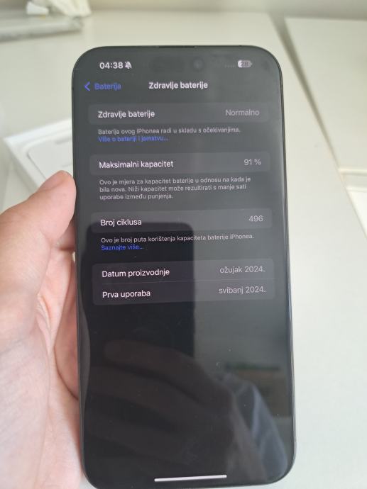 - zdravlje baterije 91% (496 ciklusa punjenja)
