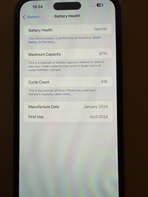 Stanje baterije 87%, uredno drzi cijeli dan koristenja.