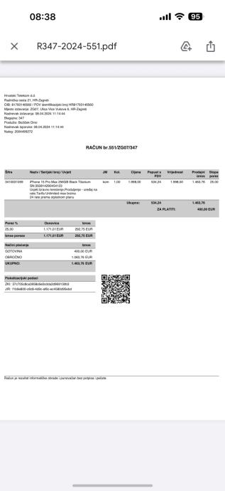 Na prodaju iphone iz naslova kupljen 08.04.2024
