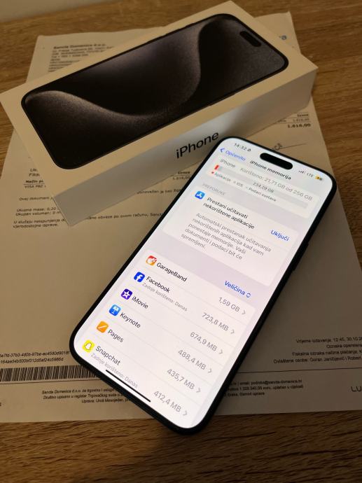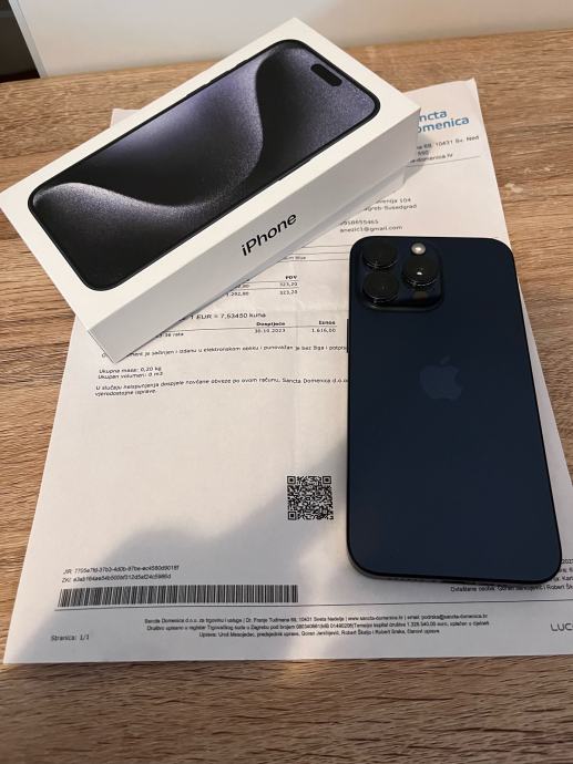 Prodajem iPhone 15 pro max od 256gb memorije u plavoj boji. Mobitel je potpuno novog stanja.Aktiviran 30.10.23.Dolazi sa kutijom,kablem,racunom