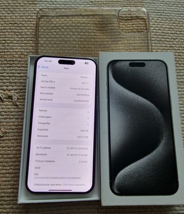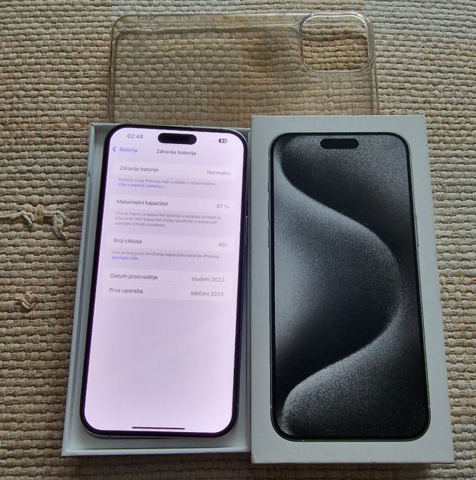 Iphone 15 Pro Max 256gb zdravlje baterije 87 u odličnom stanju i sve ispravno na iphonu. Prodajem ili mijenjam za vaš jeftiniji mobitel uz vašu doplatu cijena za keš 550e u zamijeni 600e