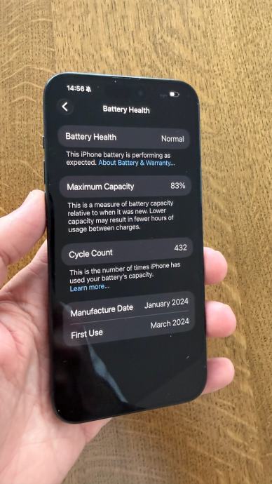 Prodajem iPhone 15 Pro Max 256GB u odličnom stanju, nema ogrebotina, mobitel je kupljen uz ugovor T-Mobile. Razlog prodaje je obnavljanje ugovora. Stanje baterije je normalno, izdrži više od jednog dana normalnog korištenja.