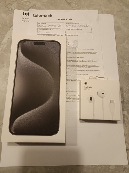 Prodajem Iphone 15 Pro Max 256gb Black Titanium kupljen 13.12.2023. u Telemachu.