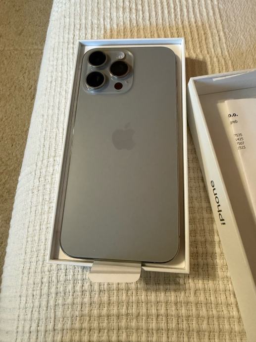 Iphone 15 Pro Max, 256GB. Natural titanium boja, u odličnom stanju, potpuno ispravan. Uvijek u maskici sa originalnim zaštitnim
