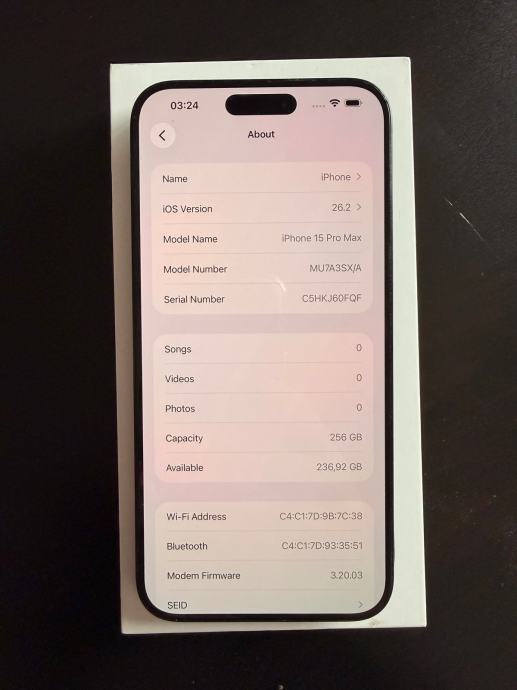 Prodajem iPhone 15 Pro Max 256GB. Prvi vlasnik. Uredjaj je od kupnje u zaštitnoj maskici i nema tragove korištenja. Dolazi u originalnom pakiranju sa svim pratećim elementima.