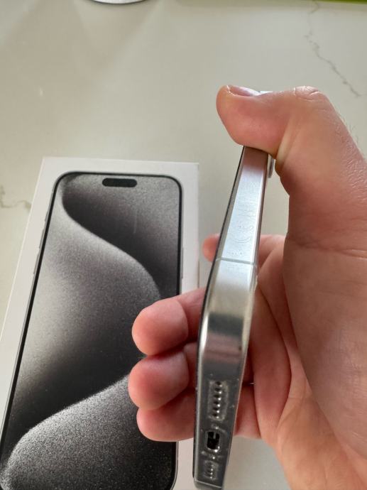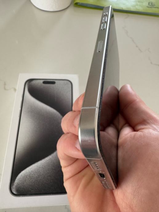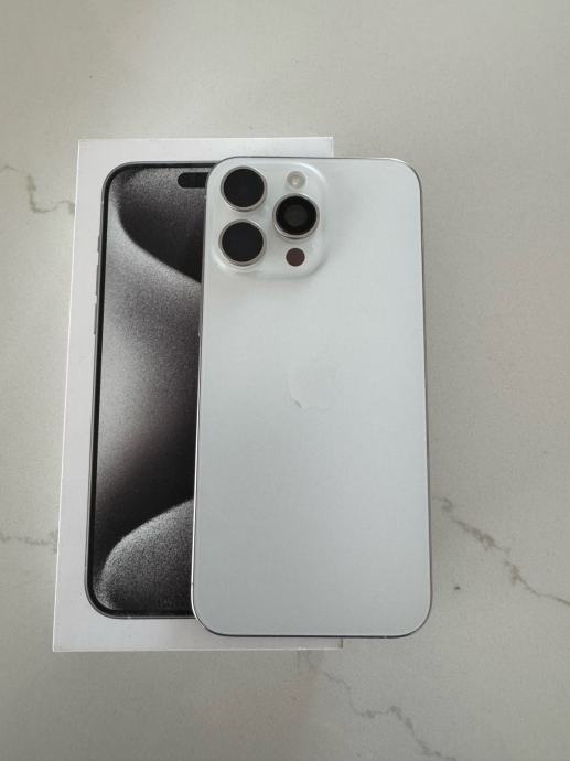 Prodajem rabljeni iPhone 15 Pro Max s 256GB memorije u bijeloj titanij boji. Uređaj dolazi s originalnom kutijom.