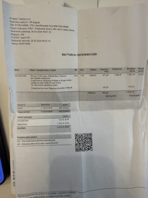 Baterija 91%. Kupljen 4/2024. Racun,
