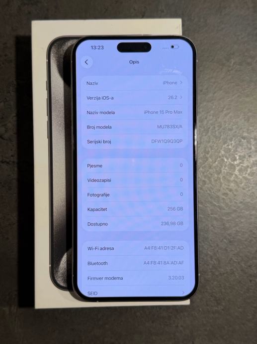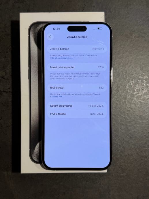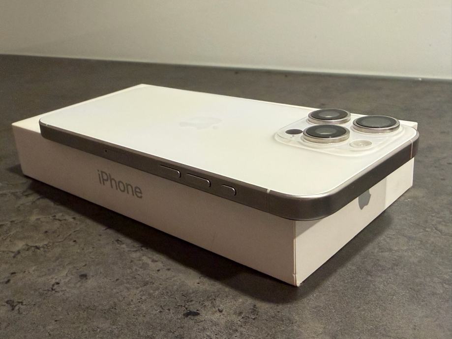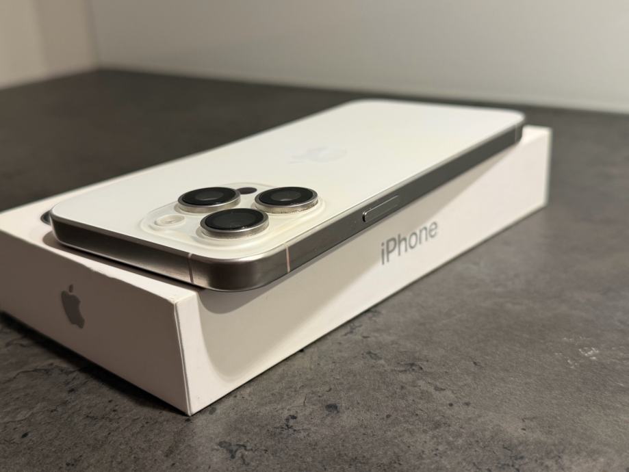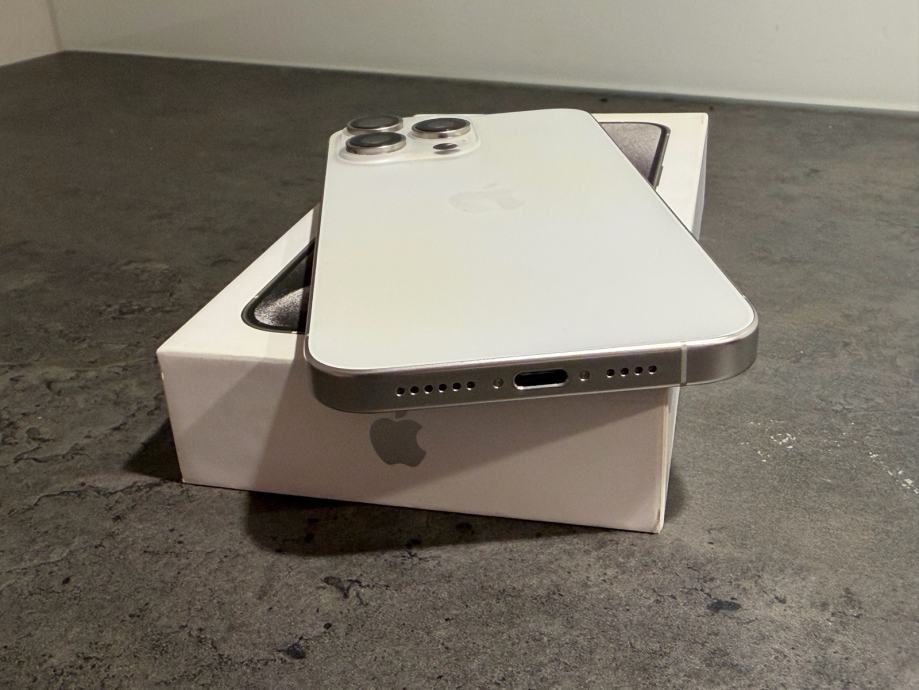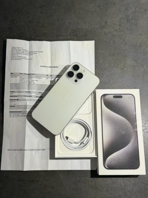 Prodajem iPhone 15 pro Max od 256 GB memorije u bijeloj boji. Mobitel je u savršenom stanju bez ikakvih tragova korištenja kao što se može vidjeti na slikama. Na uređaju nikada ništa nije mijenjano ili popravljeno, te je sve ispravno. Uređaj kupljen u Hrvatskom Telekomu te dolazi sa računom. na uređaj od prvog dana zaštitno staklo te maskica na poklon. Zdravlje baterije na 87% kapaciteta. Uređaj radi na sve mreže.
