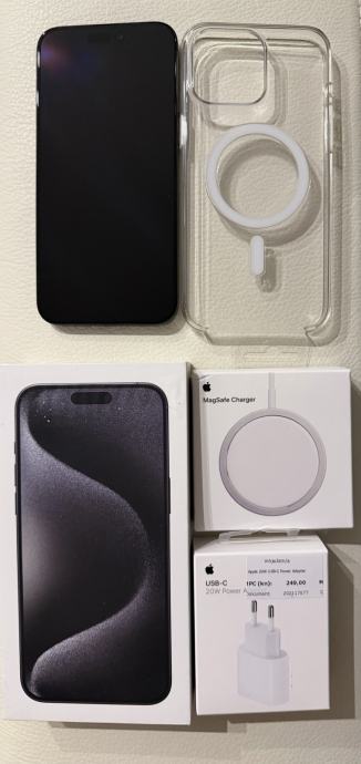Prodajem iPhone 15 Pro Max 512 GB u vrhunskom stanju – bez ijedne ogrebotine, zaštićen od prvog dana premium zaštitnim staklom i futrolom. Vrlo malo korišten (baterija 100% zdravlja), dolazi s originalnim računom za potpunu sigurnost i jamstvo.