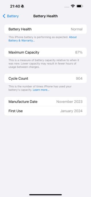 Kapacitet baterije je na 87%. Bez ikakvih ogrebotina ili oštećenja, u odličnom stanju.