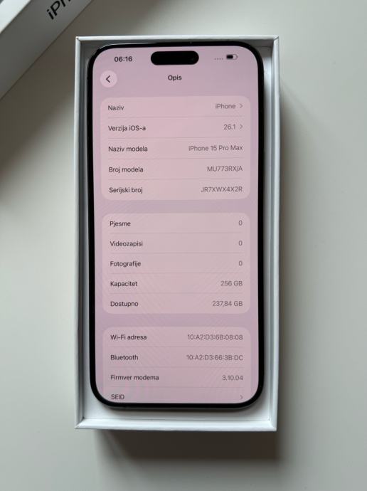 iPhone 15 Pro Max, 87%BH, garancija 5/26