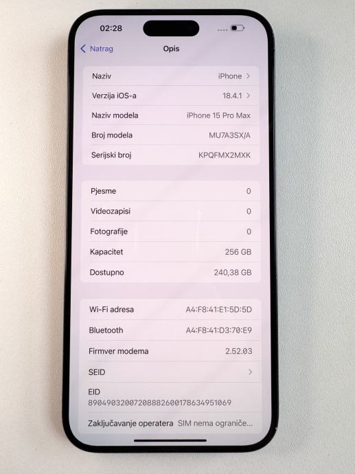 Prodajem navedeni mobitel u dobrome stanju.