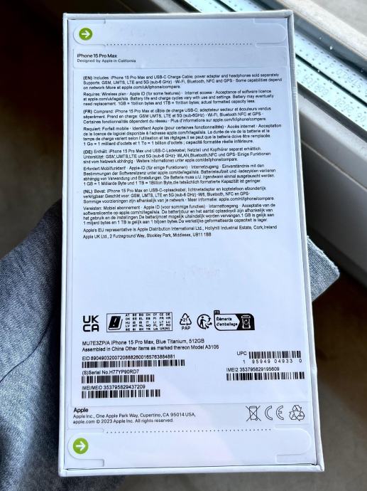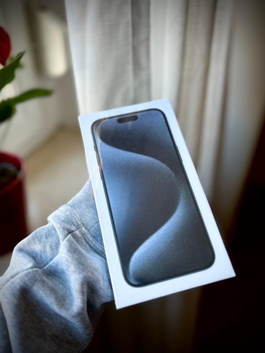 Prodajem nov, neotpakiran iPhone 15 Pro Max u boji Blue Titanium. Uređaj je tvornički zapakiran i nije bio korišten.
