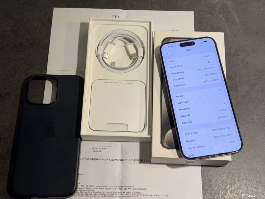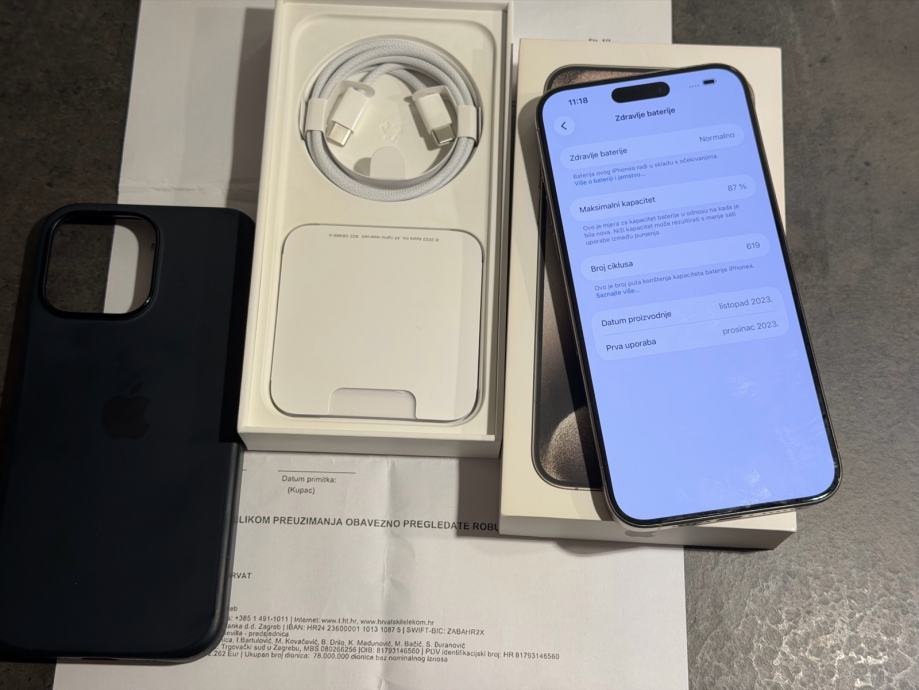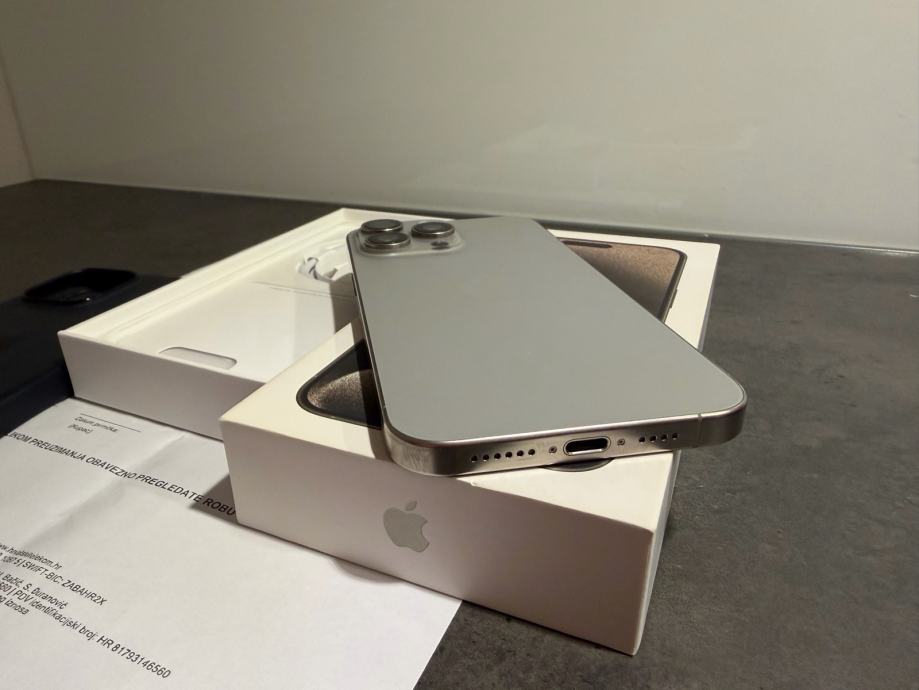 Prodajem iPhone 15 pro Max od 256 GB memorije u natural sivoj boji. Mobitel je u savršenom stanju bez ikakvih tragova korištenja. Uređaj je kupljen u Hrvatskom telekomun te dolazi sa računom,star je 2 godine. Zdravlje baterije je na 87% kapaciteta. Sve na uređaju je ispravno te nikada ništa nije mijenjano ili popravljeno.