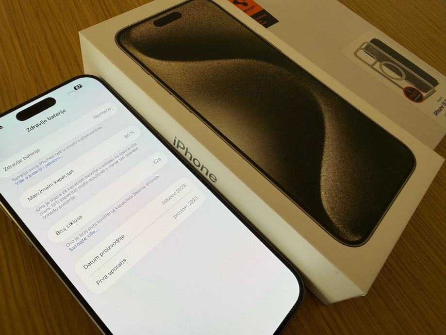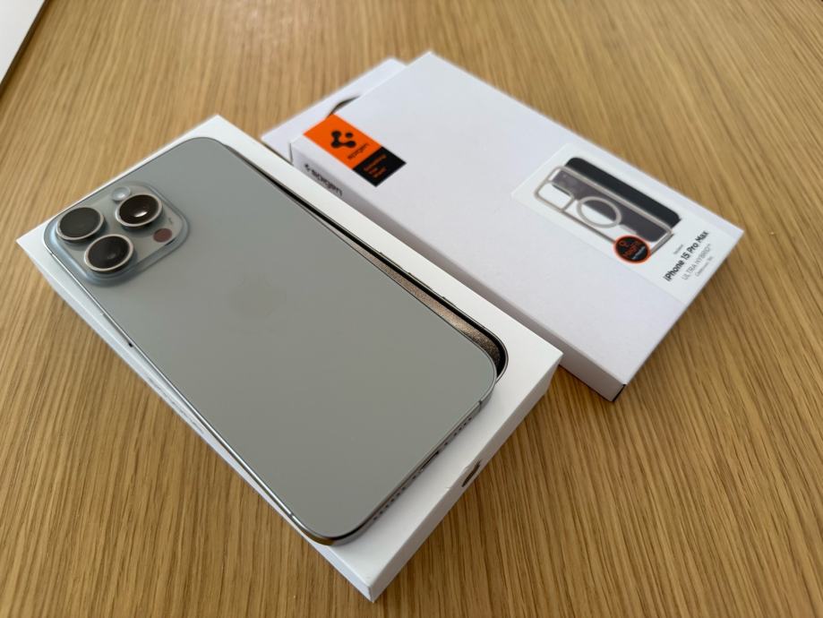 Prodaje se iPhone 15 Pro Max u Natural Titanium boji.