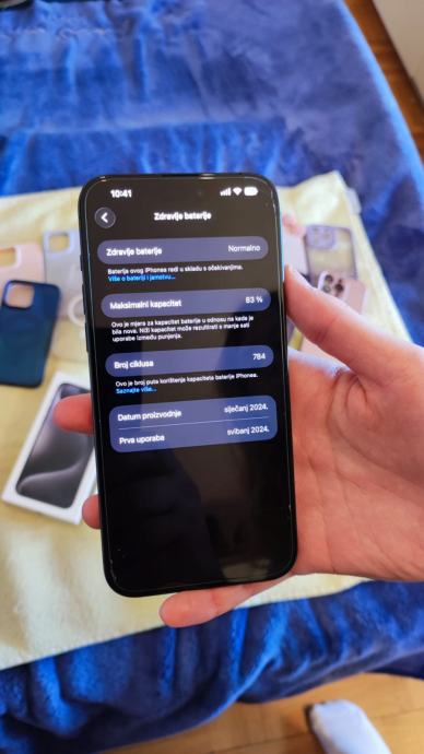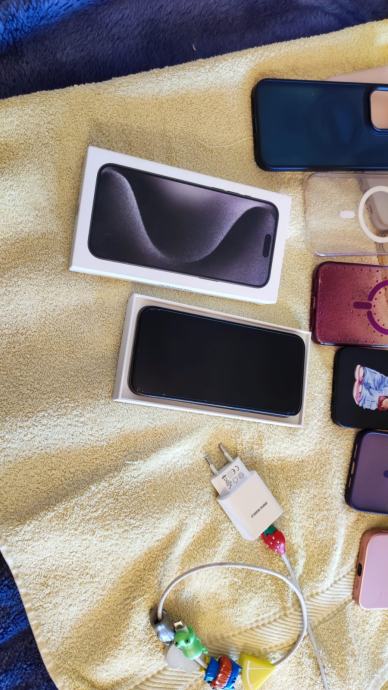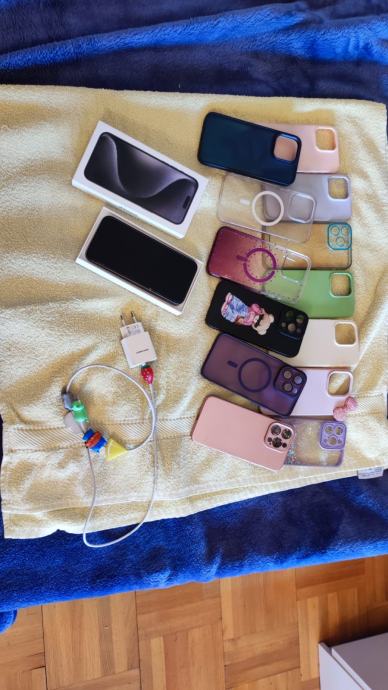 prodaje se Iphone 15 Pro Max, 256Gb, mob je u odličnom stanju 10/10, uvijek u maskici i zaštitno staklo...zdravlje baterije 83%. sa mobitelom dobijete ca 12-13 maskica i punjač i original pakiranje naravno....mobitel 530€....imam i Apple Watch 10, također top stanje..cijena 250...može u kompletu za 700€