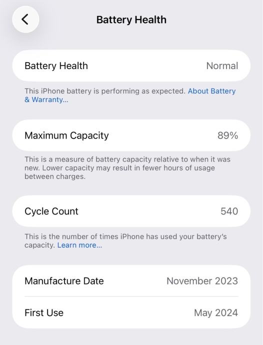 Zdravlje baterije: 89%.