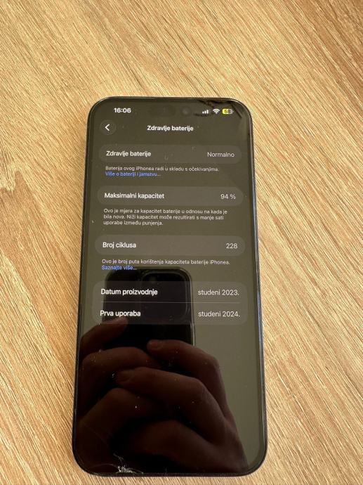 Prodajem rabljeni iPhone 15 Pro Max u tamnoj boji. Telefon je u funkcionalnom stanju, potpuno ispravan,kao nov bez ogrebotina ,jedino na prednjoj strani to je samo zaštitno staklo.. Uređaj pokazuje podatke o zdravlju baterije na 94%, dolazi bez kutije ali sa kabelom.