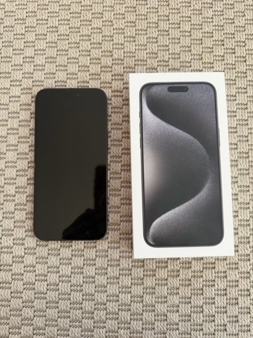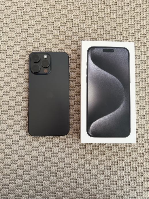 Prodajem rabljeni iPhone 15 Pro Max s 256GB memorije u crnoj boji (Black Titanium). Dolazi s originalnom kutijom.