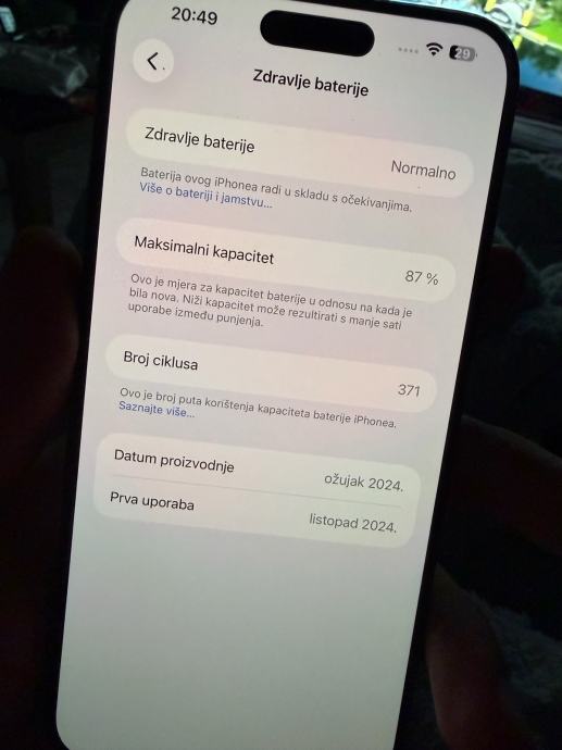 Baterija na iphonu 87%. Vidljivi sitni tragovi korištenja, se ispravno radi.