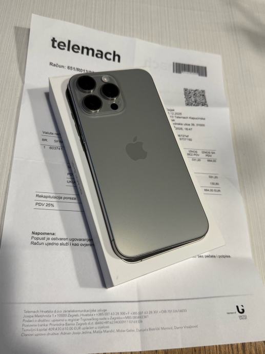 iPhone 15 Pro Max, Natural Titanium,256 GB, sve mreže, garancija Telemach do 12/2027 ( aktiviran tek u 02/2026), stanje novo!