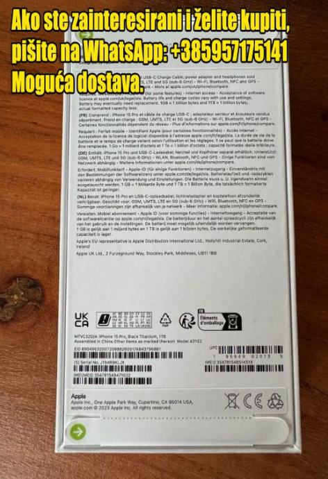 Novi Apple iPhone 15 Pro 1TB (Titanium Black) Original