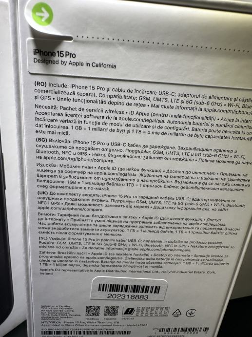 APPLE iPhone 15 Pro 1TB White Titanium Vakuum NOVO Račun 36 RATA