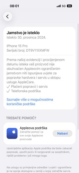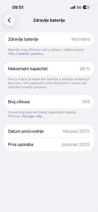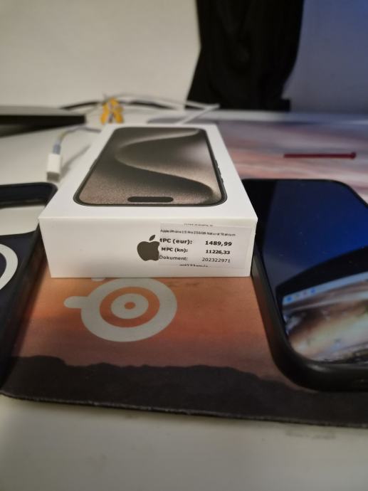 Mobitel kupljen u IStyleu 30.12.2023g. (plaćen preko 1400€) Zdravlje baterije 89%, IOS 26.4.1., 256GB Natural Titanium model.