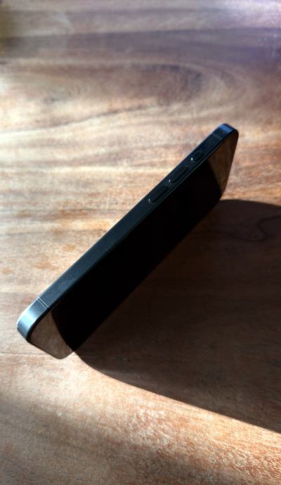 iPhone 15 PRO 128 GB crni, u odličnom stanju, eSIM varijanta mobitela. Baterija 87%.