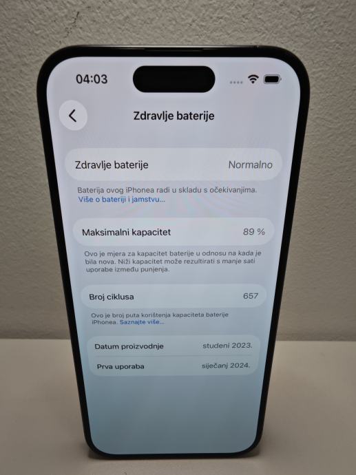 Rabljeni iPhone 15 Pro 128Gb u super stanju sa par sitnih ogrebotina na ekranu. Zdravlje baterije 89%.