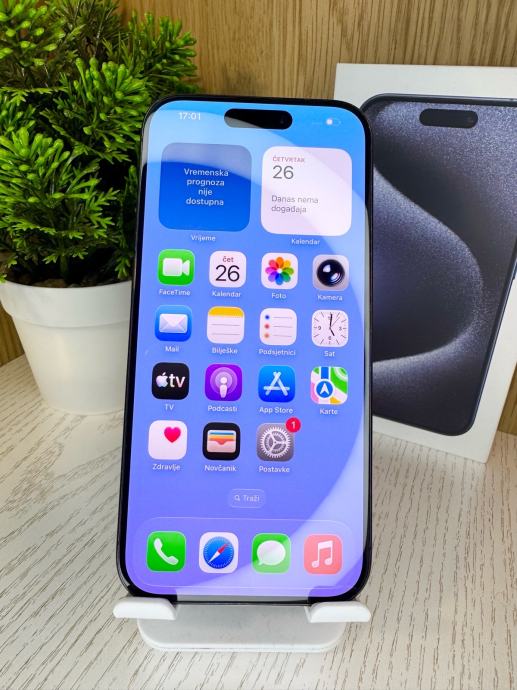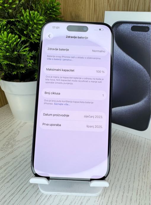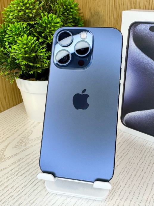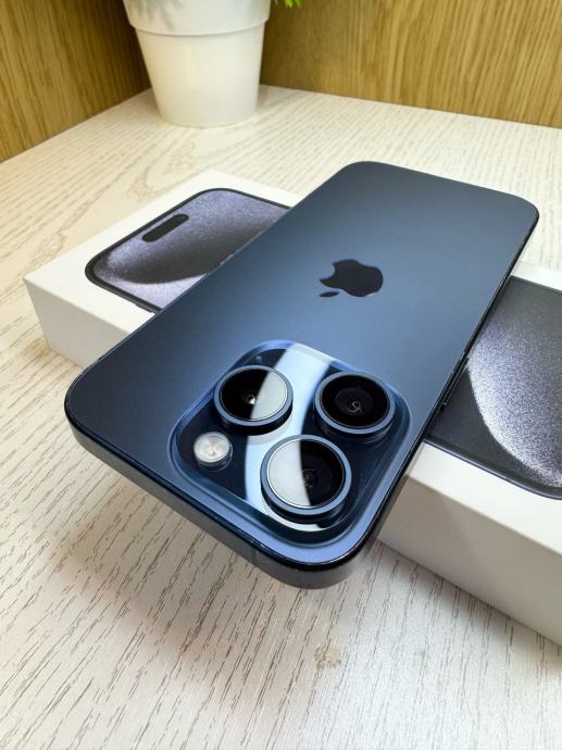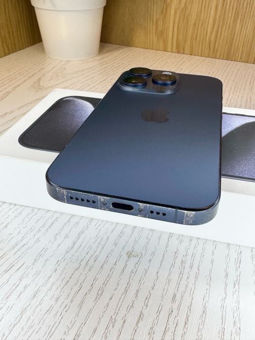 Prodajem navedni iPhone 15 Pro - 128Gb u tamno-plavoj boji.