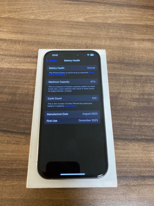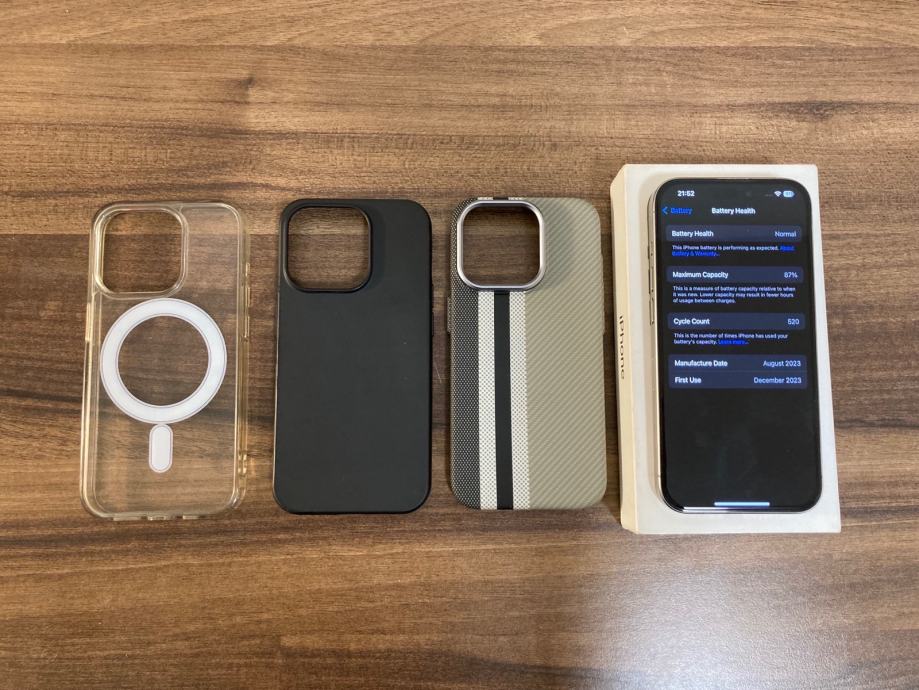 Prodajem Apple iPhone 15 Pro. Natural titanium boja, 128Gb. Mobitel je u vrlo dobrom stanju sa minimalnim tragovima korištenja, zaštitno staklo je na njemu. Ima 87% zdravlje baterije, izdrži dan normalnog korištenja bez problema.