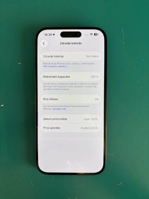 Na mobitelu je promijenjena baterija (stavljena nova original Appleova) prije mjesec dana, te se od tada pojavila svijetla tanka linija na ekranu (vidljivo na slikama). Linija ne smeta radu uredaja (touch na tom dijelu normalno funkcionira). Kuciste je u odlicnom stanju, ekran ima nekoliko frizeva od koristenja.