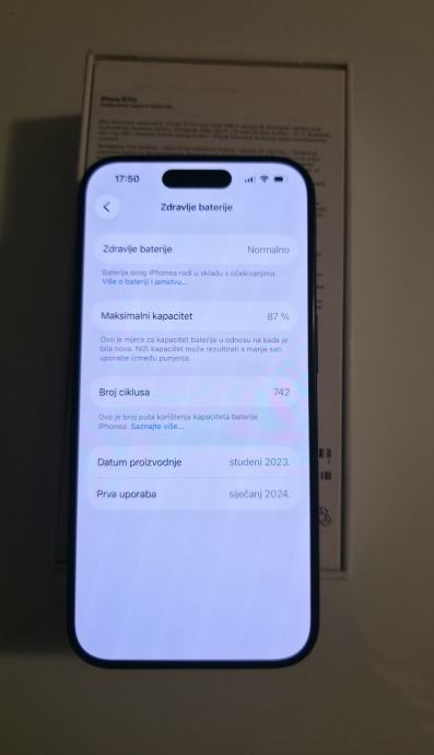iPhone 15 Pro 256 GB - Blue Titanium- Kao nov- 87% baterija