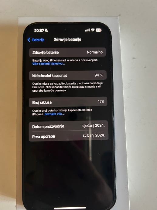 Mobitel bez tragova korištenja, kao što se vidi na slikama. Od prvog dana zaštitna maska i zaštitno staklo (folija) na njemu. Zdravlje baterije 94%. Original kutija.Cijena 780€