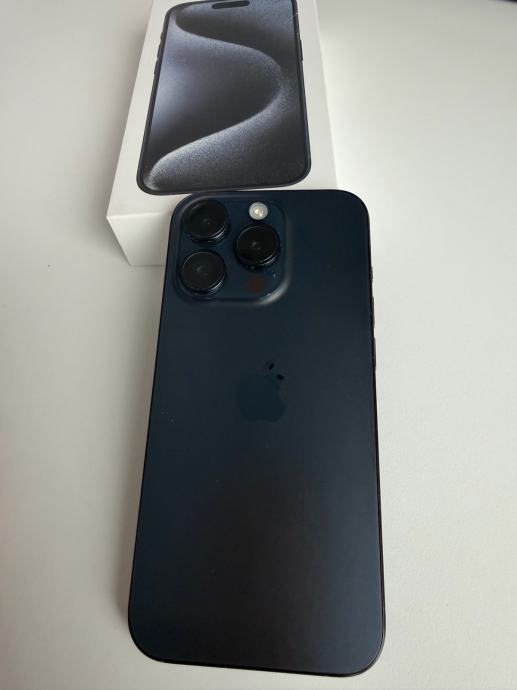 Prodajem Iphone 15 Pro 256 GB, u boji Titanium Blue. Zdravlje baterije je na 88%.