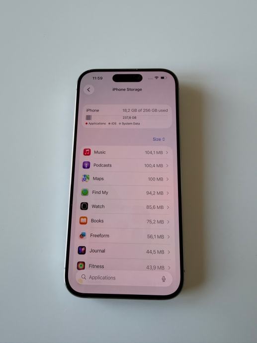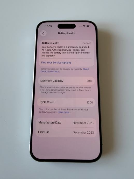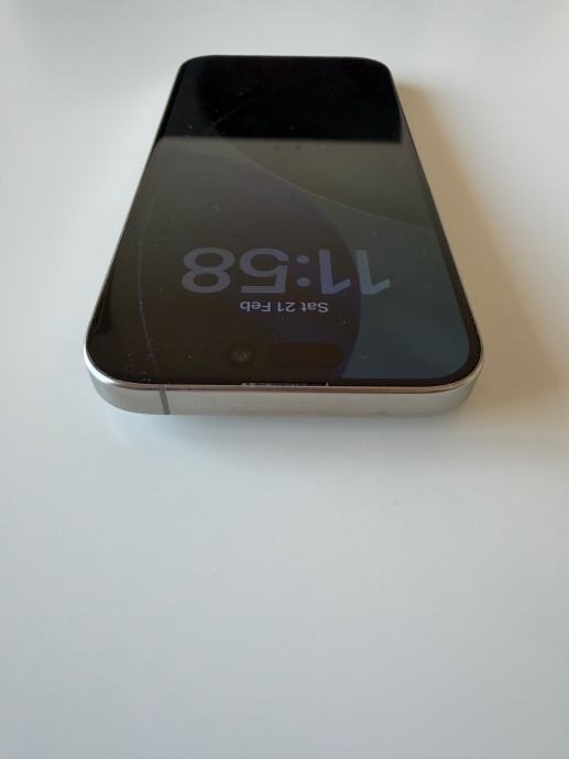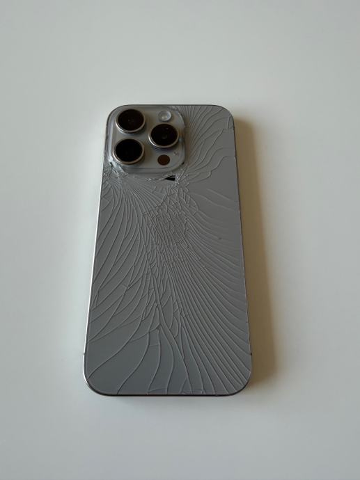 Prodajem rabljeni iPhone 15 Pro s 256 GB memorije u prirodnoj titanij boji. Ekran je u urednom stanju (manje ogrebotine od redovitog korištenja), a stražnja strana uređaja ima napuklo staklo. Mobitel je funkcionalan i radi. Zdravlje baterije na 79%.