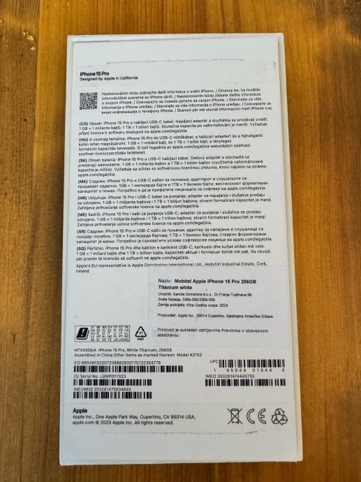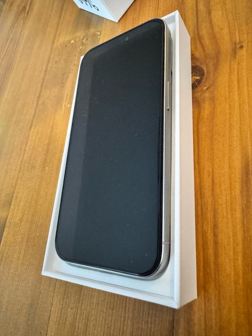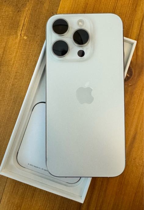 Prodajem rabljeni iPhone 15 Pro s 256 GB memorije u bijeloj titanij boji.
