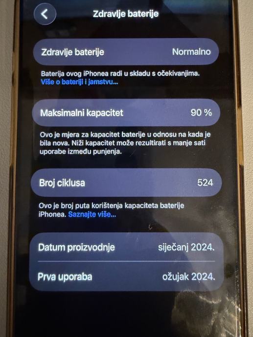Maksimalni kapacitet baterije je na 90% te bez problema izdrži dan zahtjevnog korištenja.