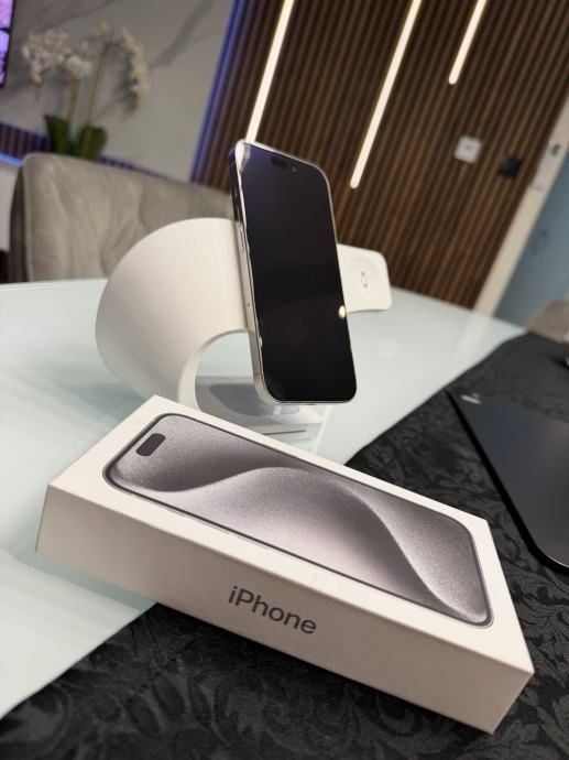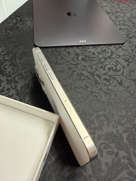 Iphone 15 pro, bijeli, 256 gb, baterija 87%.
