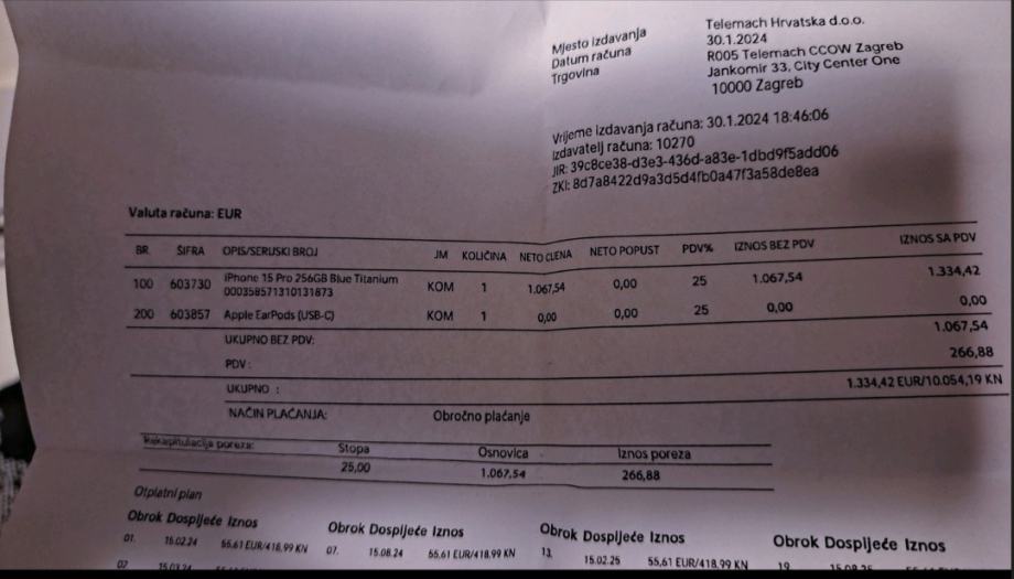 Iphone 15 pro 256gb, baterija na 89%, očuvan dolazi sa orihinal telekom rečunom,original kutijom i maskicama i punjaćem,za više informacija javite se privatno, možemo se dogovoriti oko cjene,moguće osobno preuzimanje u zagrebu ili slanje poštom,ako ste stvarno zaintersirani javite mi se na broj +385976850844