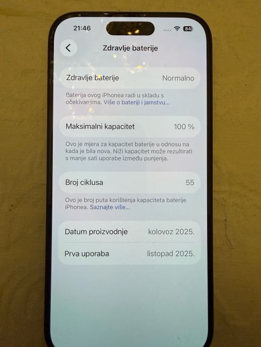 Prodajem 15pro 256gb , radi na sve mreže. Stanje odlicno , zdravlje baterije je 100% , samo 55 ciklusa punjenja. .