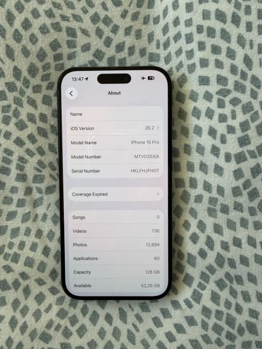 iPhone 15 Pro (Blue, 128 GB), bought new, used for 2 years, but in excellent condition.