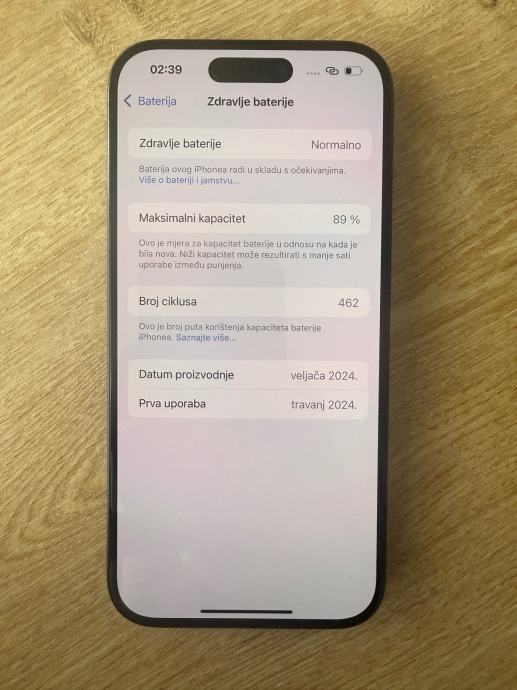 iPhone 15 Pro Blue Titanium, 128GB, star 1,5 godine, kapacitet baterije 89%, u vrhunskom stanju. Na poklon 5 maskica. Na ekranu mala crtica koja se jedva vidi. Cijena 600€