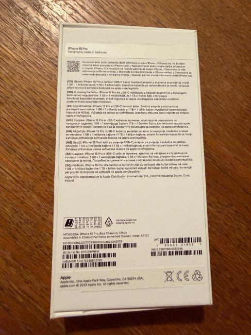 Prodajem iPhone 15 Pro u Blue Titanium boji sa 128 GB memorije. Telefon dolazi s originalnom kutijom, a uz njega dobivate i dvije prozirne maskice te dvije zaštite za ekran. Telefon je potpuno ispravan. Baterija 84%. Kupljen 01/2024.