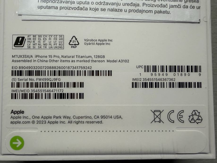 ● iPhone 15 Pro, prirodni titanij (bijeli), kapaciteta 128 GB